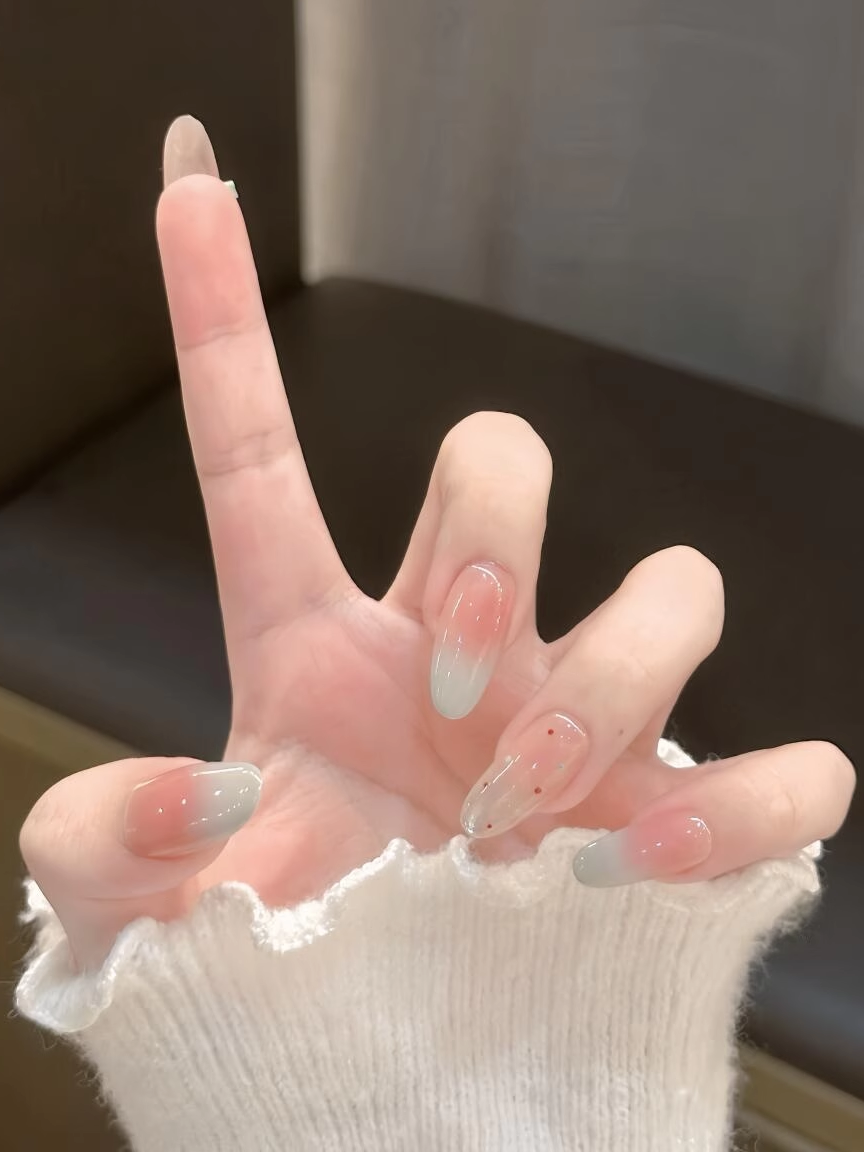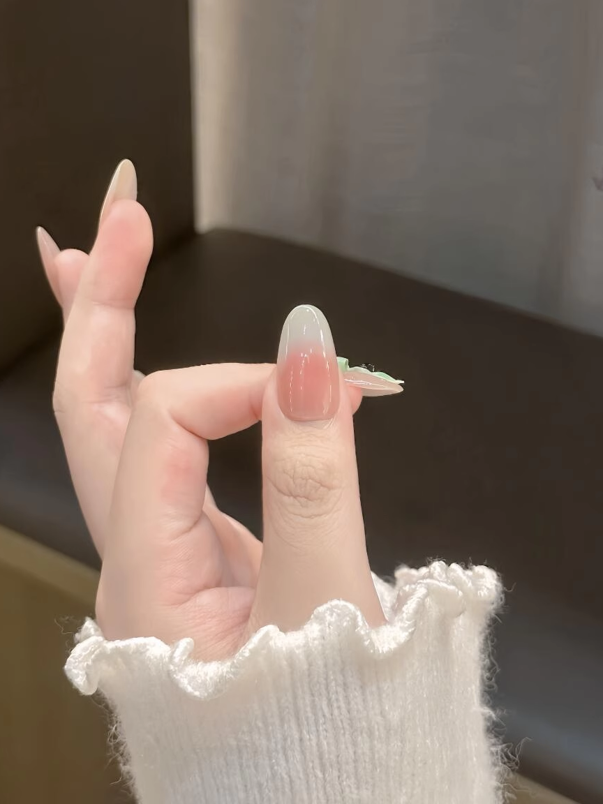 The mint to nude gradient is so subtle and classy. Perfect for both casual and formal occasions. The ribbon details are delicate and not too overwhelming.
